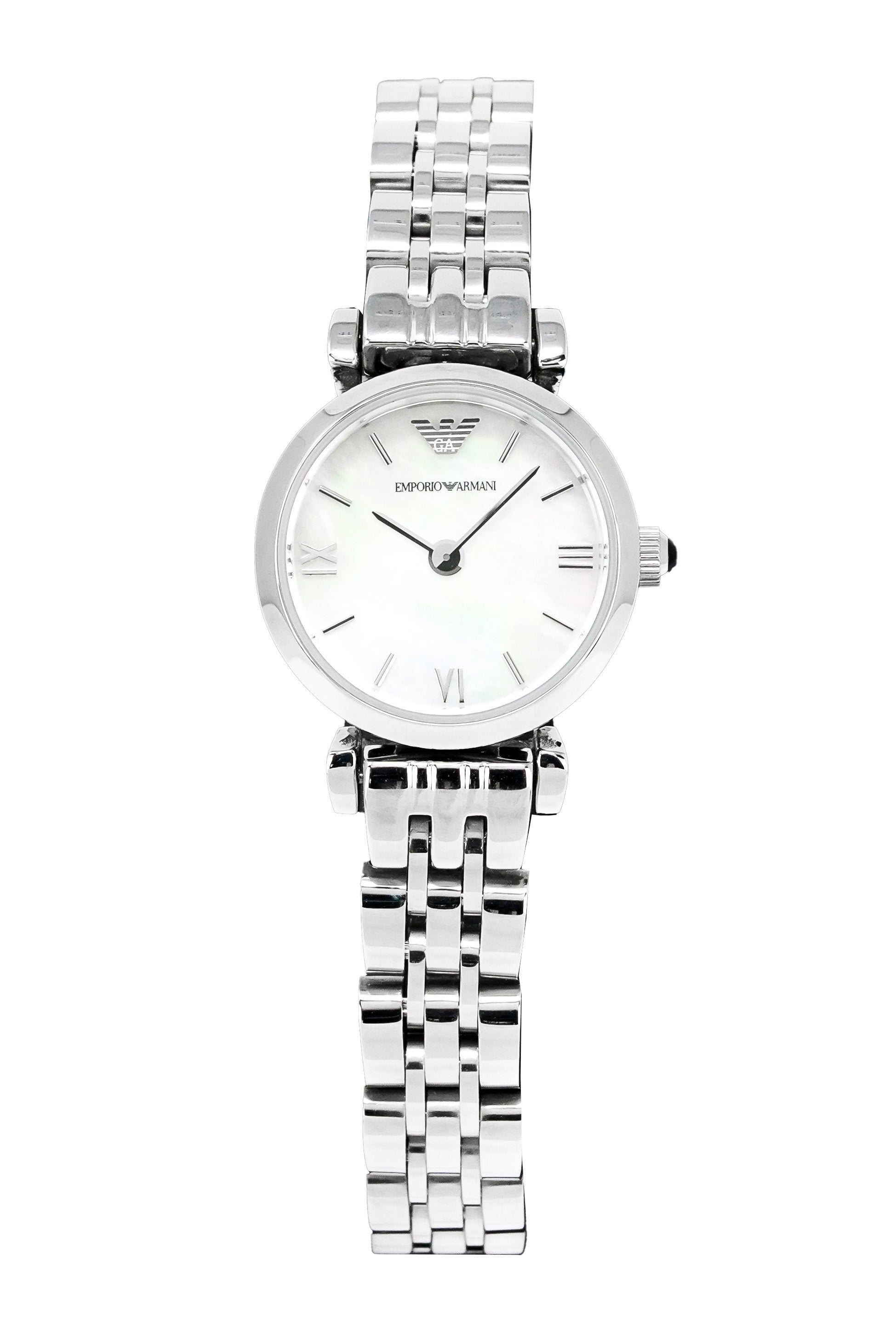 Swiss Made Quartz 3 Hands Movement. 26mm Stainless Steel Case. Scratch Resistant Mineral Crystal. Silver Textured Dial. Stainless Steel Hands and Diamond Indexes. 14mm Stainless Steel Bracelet with Push Button Butterfly Clasp. Water Resistant to 50 Meters 5ATM - Swiss Made