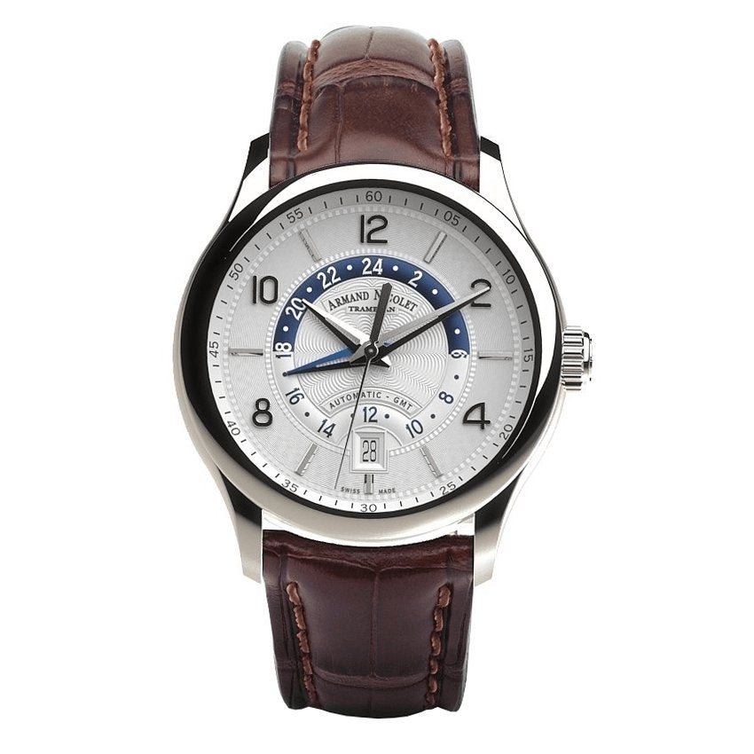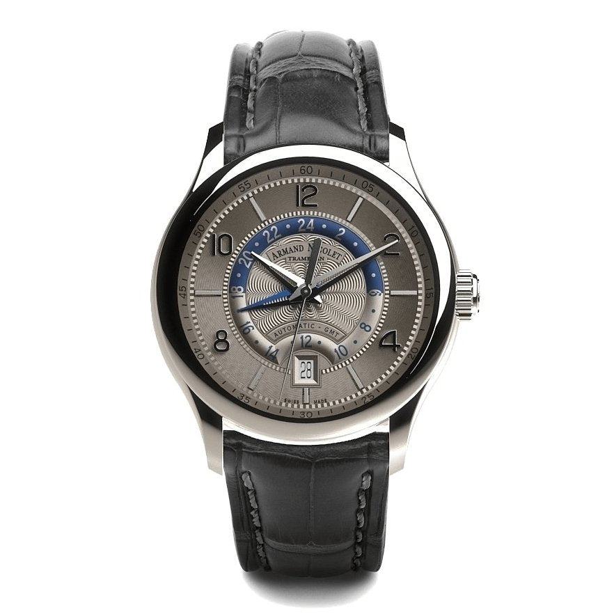 Movement: Mechanical, Automatic With A Power Reserve Of 38 Hours - Calibre Date AN200 (Based On SW-200 Modified Per Armand Nicolet’s Specifications).Case: 41mm X 13mm Stainless Steel 316L Case - Case With Antiglare Treated Sapphire Crystal On Top And Screwed Back - Unidirectional Turning Ceramic Bezel - Stainless Steel 316L With Turning Blue Ceramic Bezel - Exhibition Caseback.Dial: Silver Dial - Guilloché Dial With Luminous Applied Indexes And Hands.Strap / Bracelet: 24mm Width 316L Stainless Steel Bracelet with Deployment Buckle