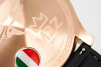 Grey Guilloché Dial with Luminous Hour Markers - Rose Gold/Black Applied Hour and Minute Hand - Black/Italy Colours Seconds Hand - Date at 3 O'Clock.