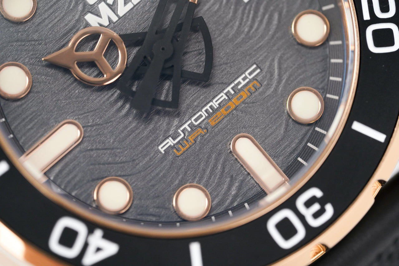 M2Z Men's Watch Diver 200 Black IP Rose Gold 200-008