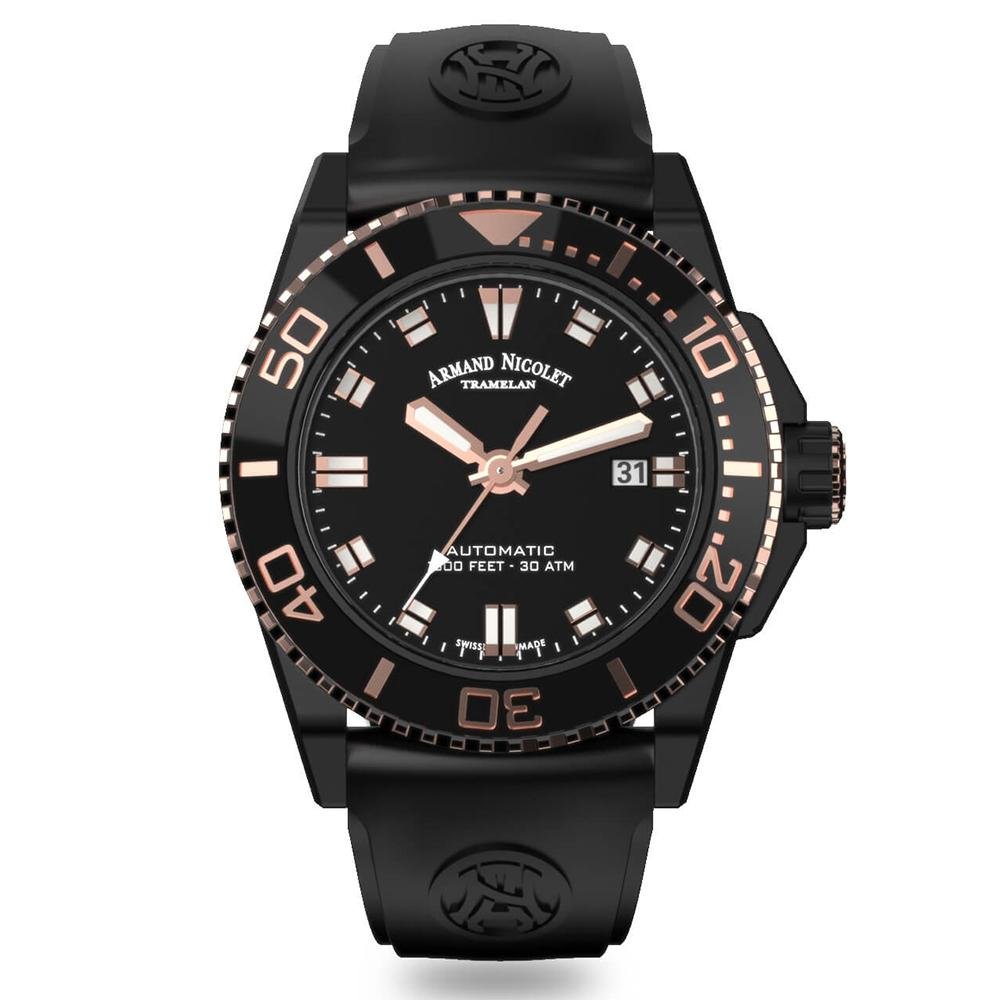 Armand Nicolet JS9-44 Black/Rose Gold Stainless Steel