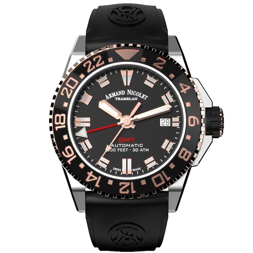Armand Nicolet JS9-41 GMT Stainless Steel Black Ceramic Bezel