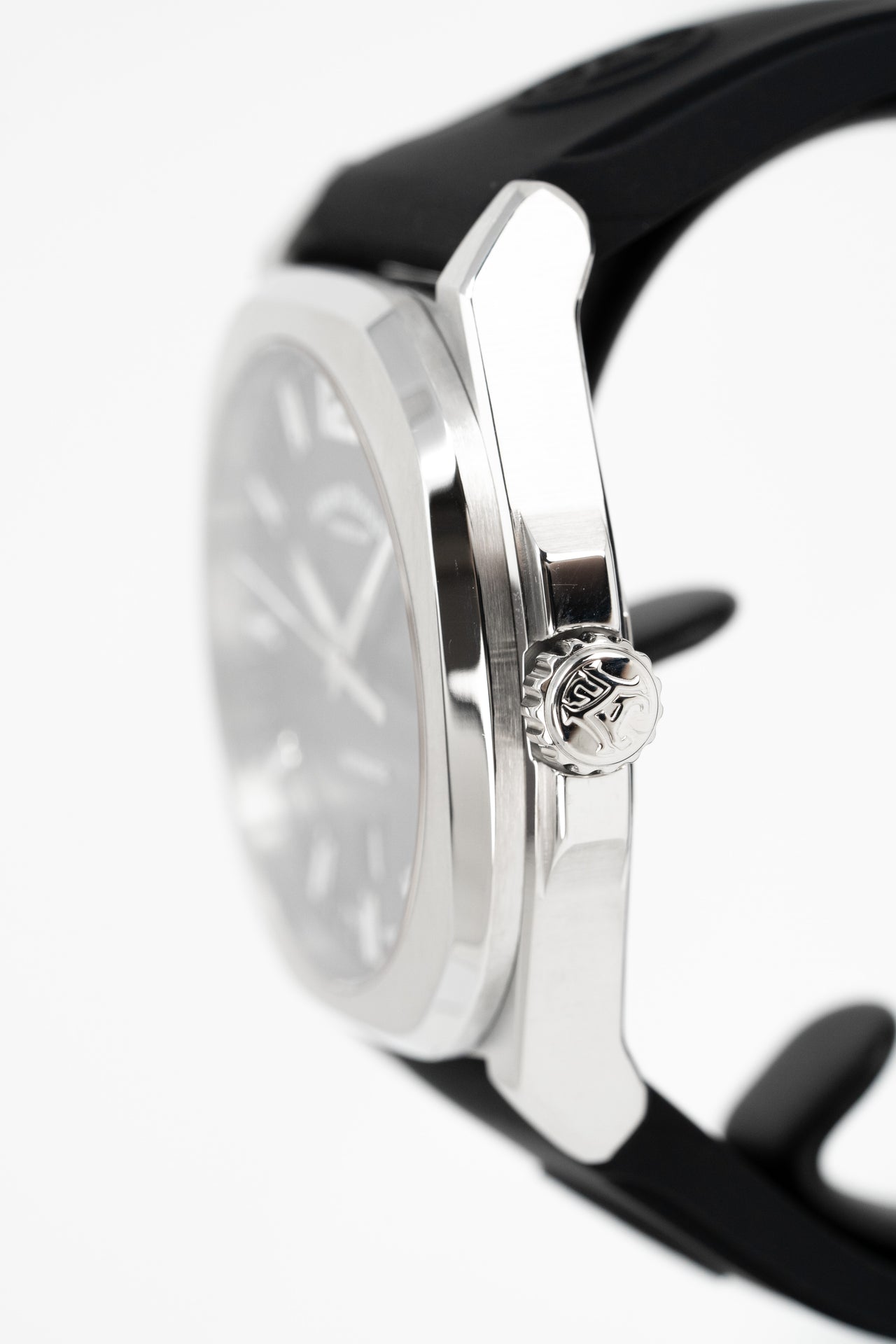 24 mm Width Black Rubber Strap with 316L Stainless Steel Deployment Buckle