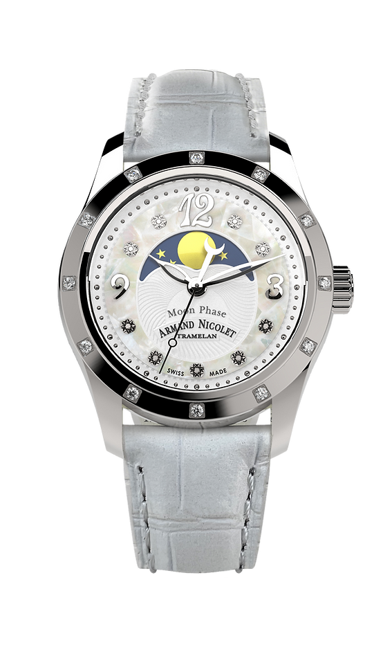 Armand Nicolet Ladies Watch M03 Moonphase 34mm Silver White A151RAA-AN-P882BC8 - Specification