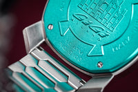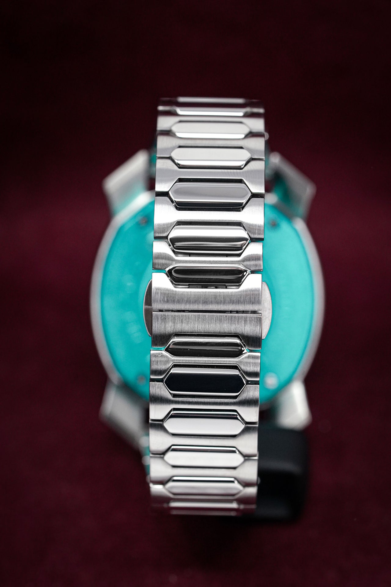 Blue Skeleton Dial. Polished Steel Hour Markers and Hands.