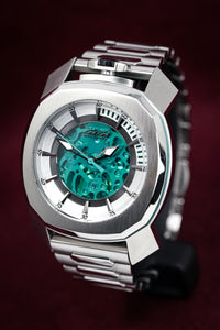 Automatic Self Winding Skeletonized Movement. Power Reserve of 41 Hours. 24 Jewels. 21,600bph.