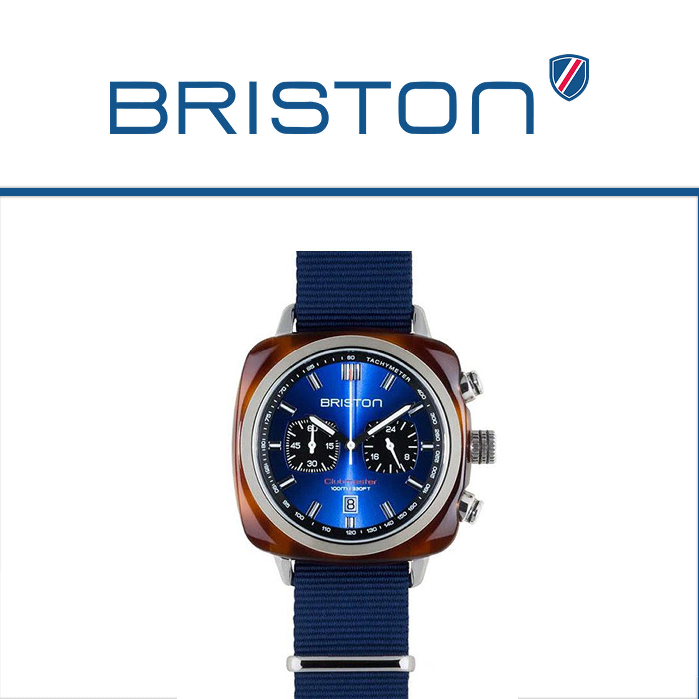 The Briston Clubmaster Sport Acetate Watch offers a sportier look with a 42 mm case and a tachymetric scale for the chronograph model, not to mention its interchangeable NATO strap or khaki canvas leather. Featuring a black dial and 2 white counters, this watch is inspired by the lines of the racing cars of the 60s.