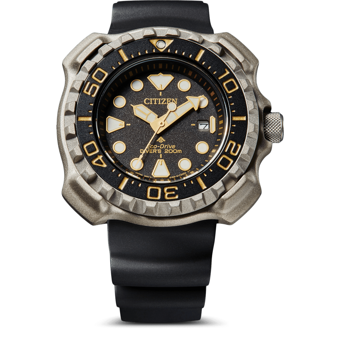 46mm x 14mm Black Resin Case - Scratch-Resistant and Anti-Reflective Sapphire Crystal - Push/Pull Crown - Solid Caseback.