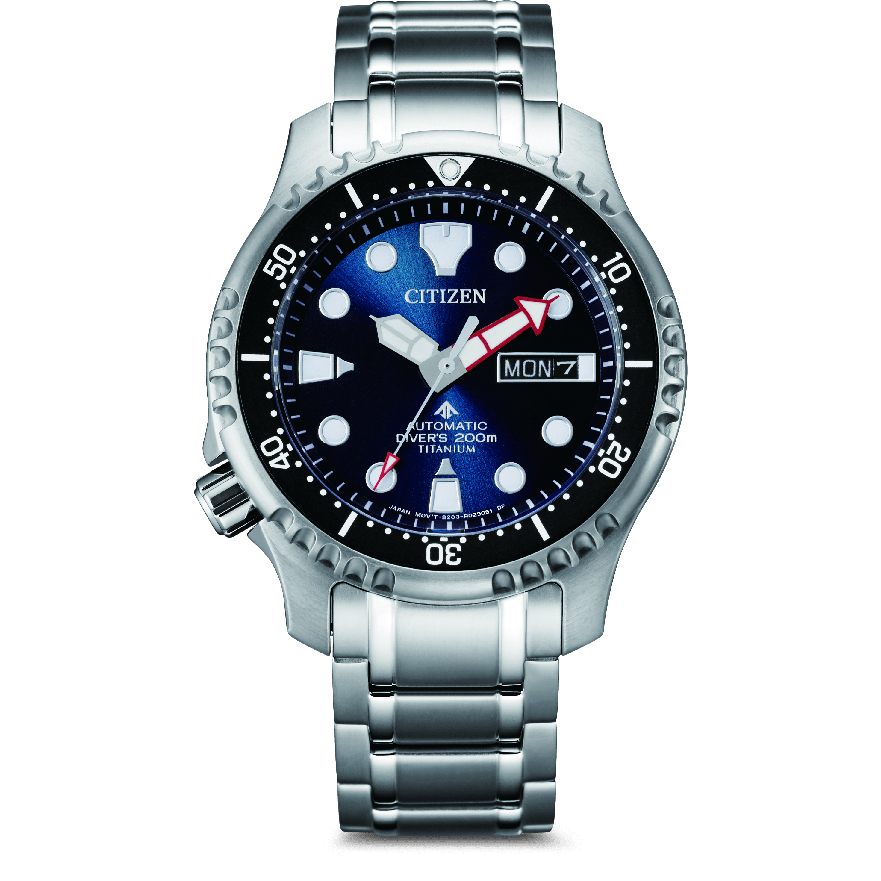 Black and Blue Dial - Hour Flag Indexes - Luminous Hour and Minute Hands - Silver Seconds Hand - Date At 3 O'Clock.