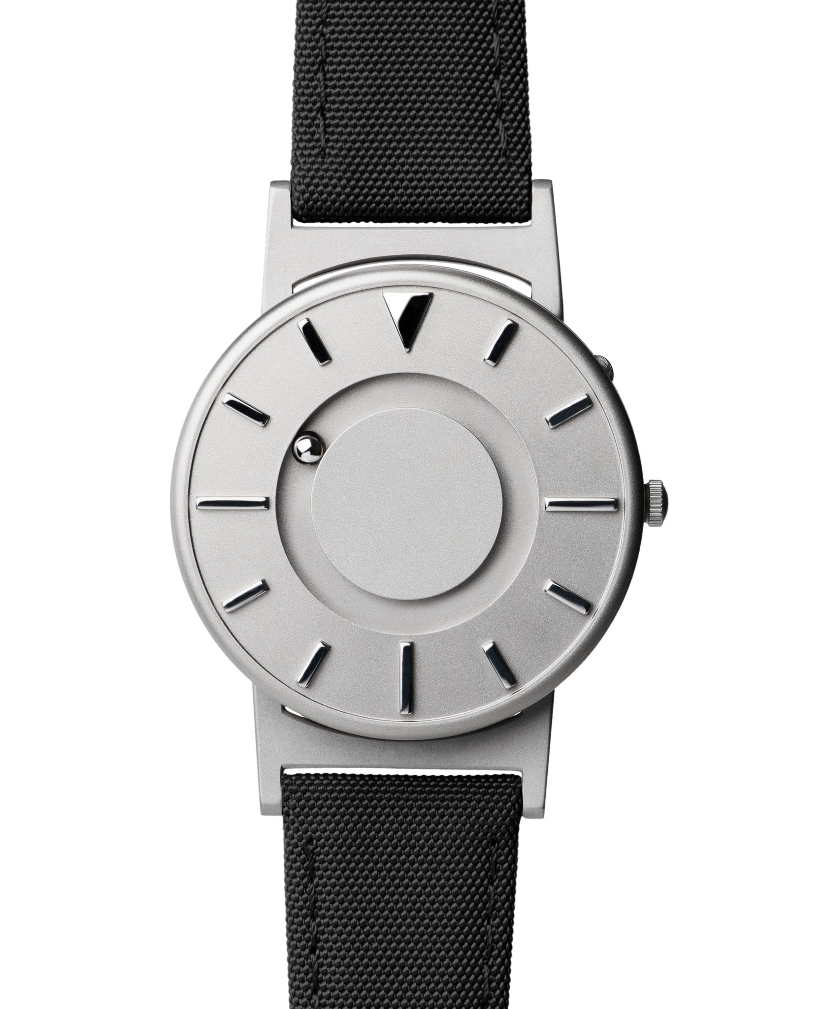 Swiss Made Quartz 3 Hands Movement. Date. 32mm Stainless Steel Case. Stainless Steel Bezel. Scratch Resistant Mineral Crystal. Silver Tone Textured Dial. Luminous Stainless Steel Hands and Stick Indexes. Date Window at 3. 14mm Check Pattern Fabric Strap with Stainless Steel Pin Buckle. Water Resistant to 50 Meters 5ATM - Swiss Made