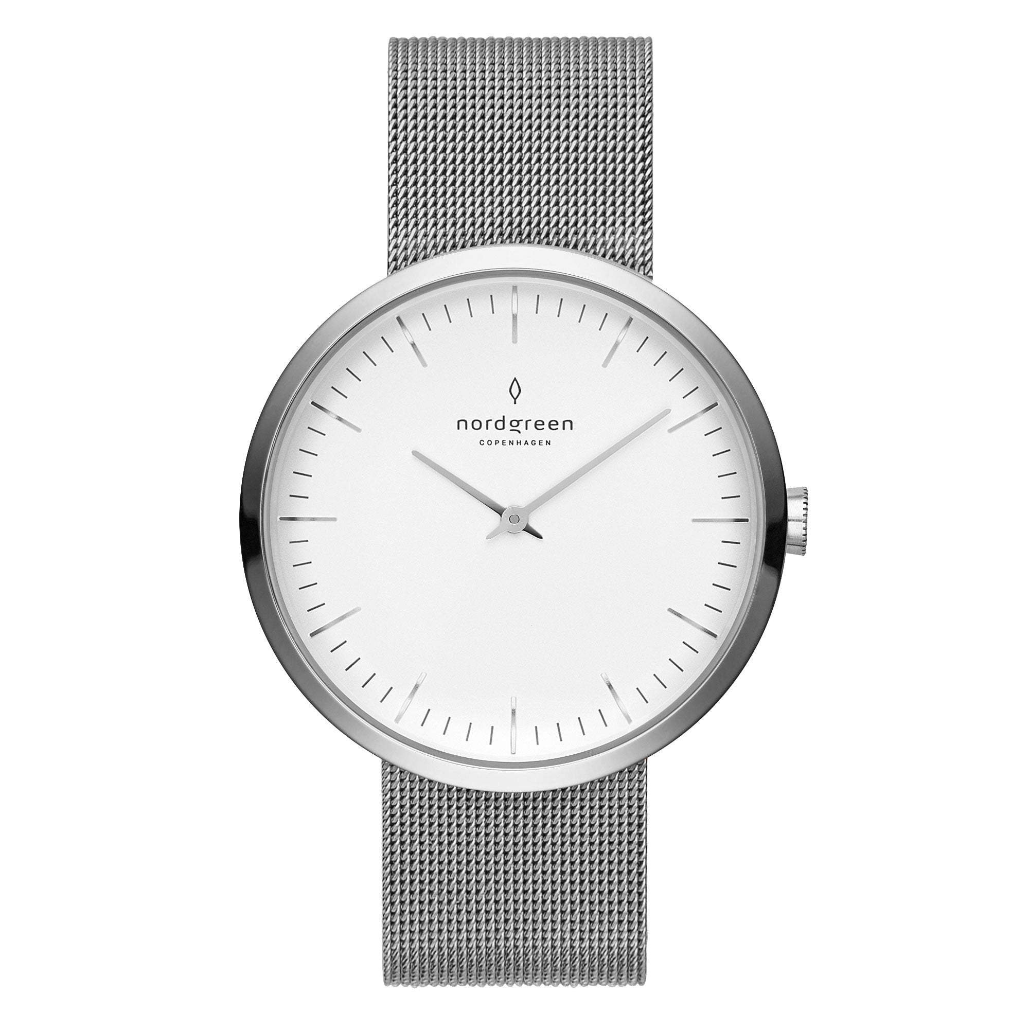 Swiss Made Quartz 3 Hands Movement. 26mm Stainless Steel Case. Scratch Resistant Mineral Crystal. Silver Textured Dial. Stainless Steel Hands and Diamond Indexes. 14mm Stainless Steel Bracelet with Push Button Butterfly Clasp. Water Resistant to 50 Meters 5ATM - Swiss Made