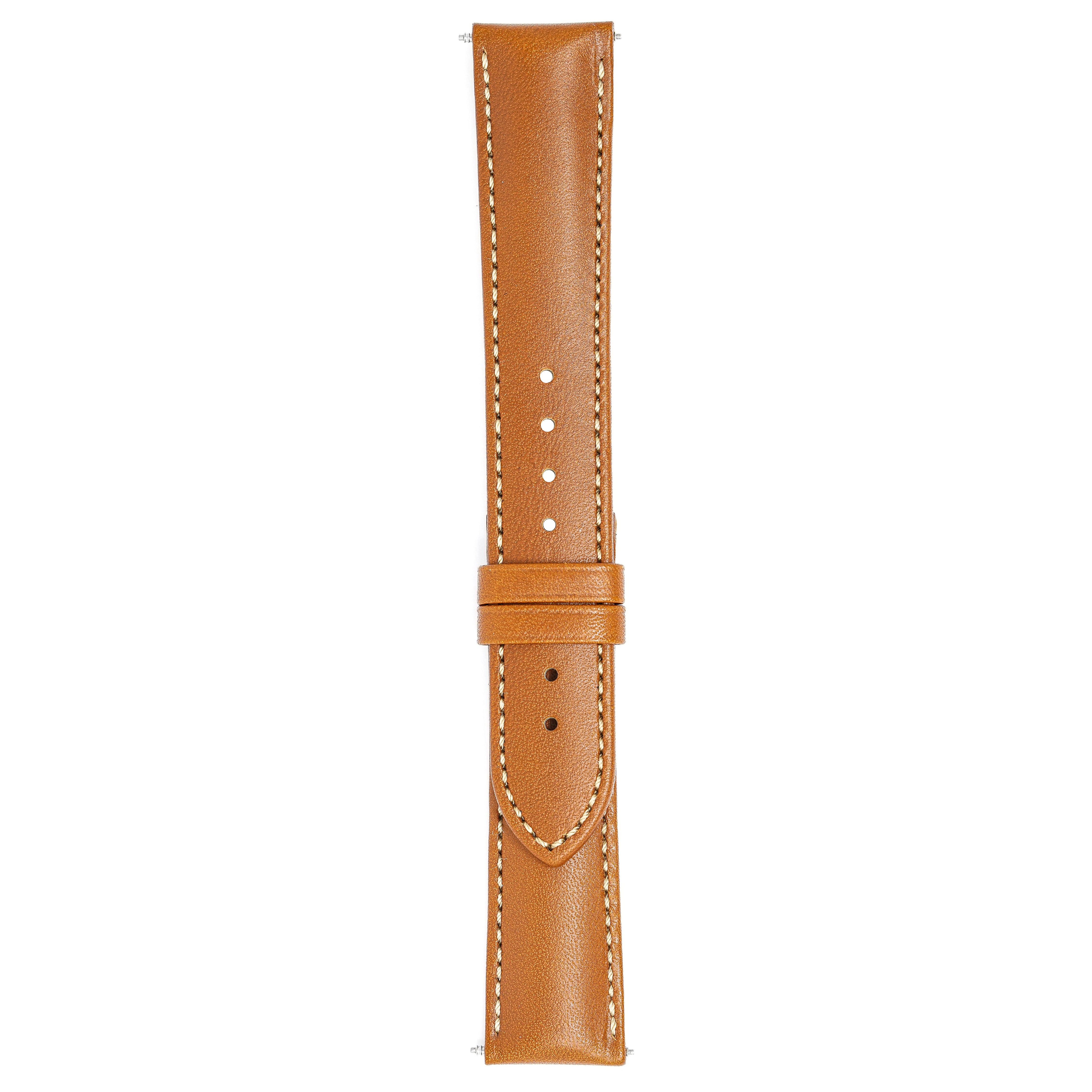 20mm width x 20cm Length Brown Artisan Leather Strap with Brown Stitchings. Upper Layer: Vegetable-Tanned Italian Calfskin Lower Layer: Soft-Glove Leather Lining Water resistance: Splash Resistant The Strap is Brand New.