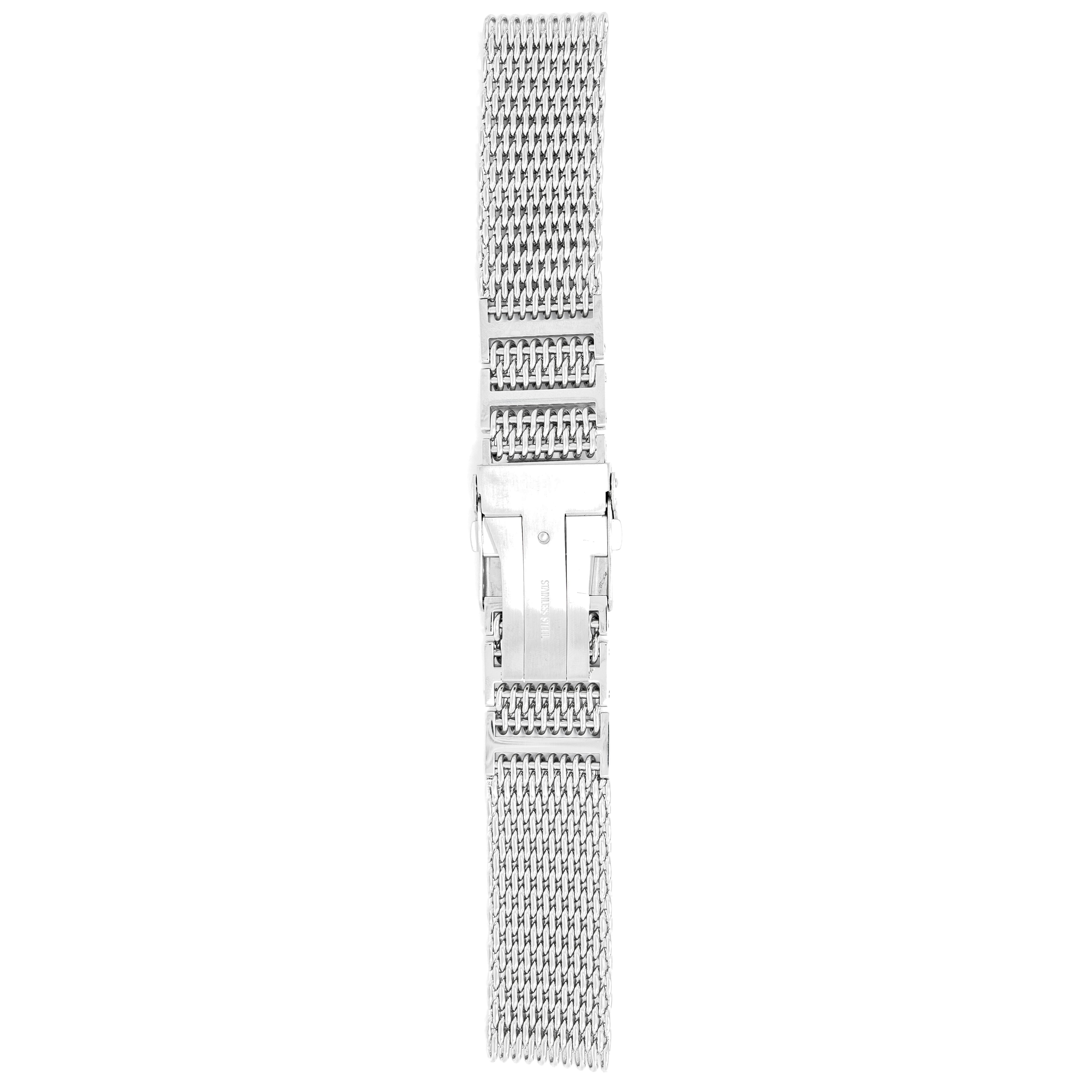24mm width x 20cm Length Stainless Steel Mesh Bracelet with Push Button Deployment Clasp.