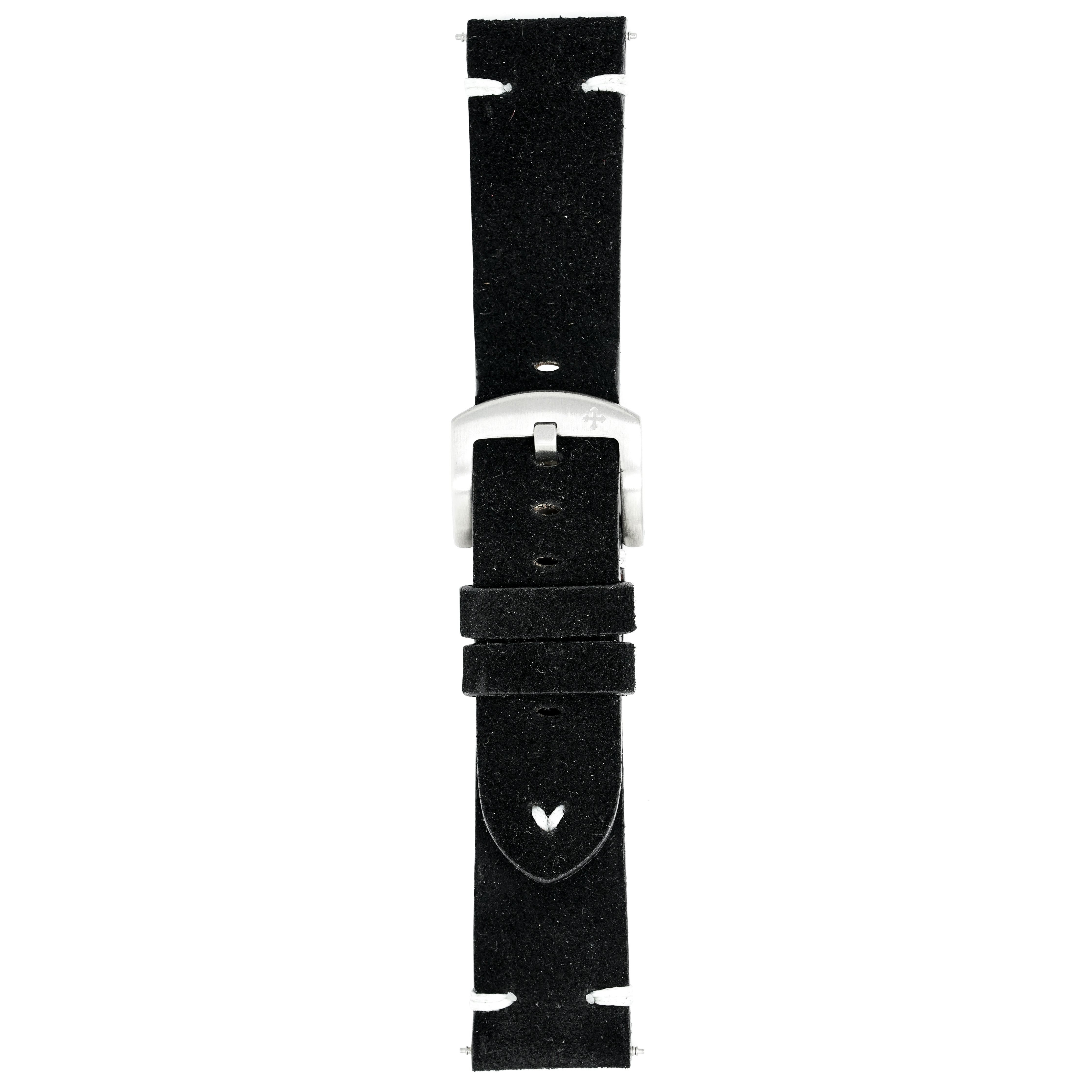 22/20mm width x 21.5cm Length Black Handmade in Italy Leather Strap with White Stitchings - Fitted With a Brushed Stainless Steel Buckle.