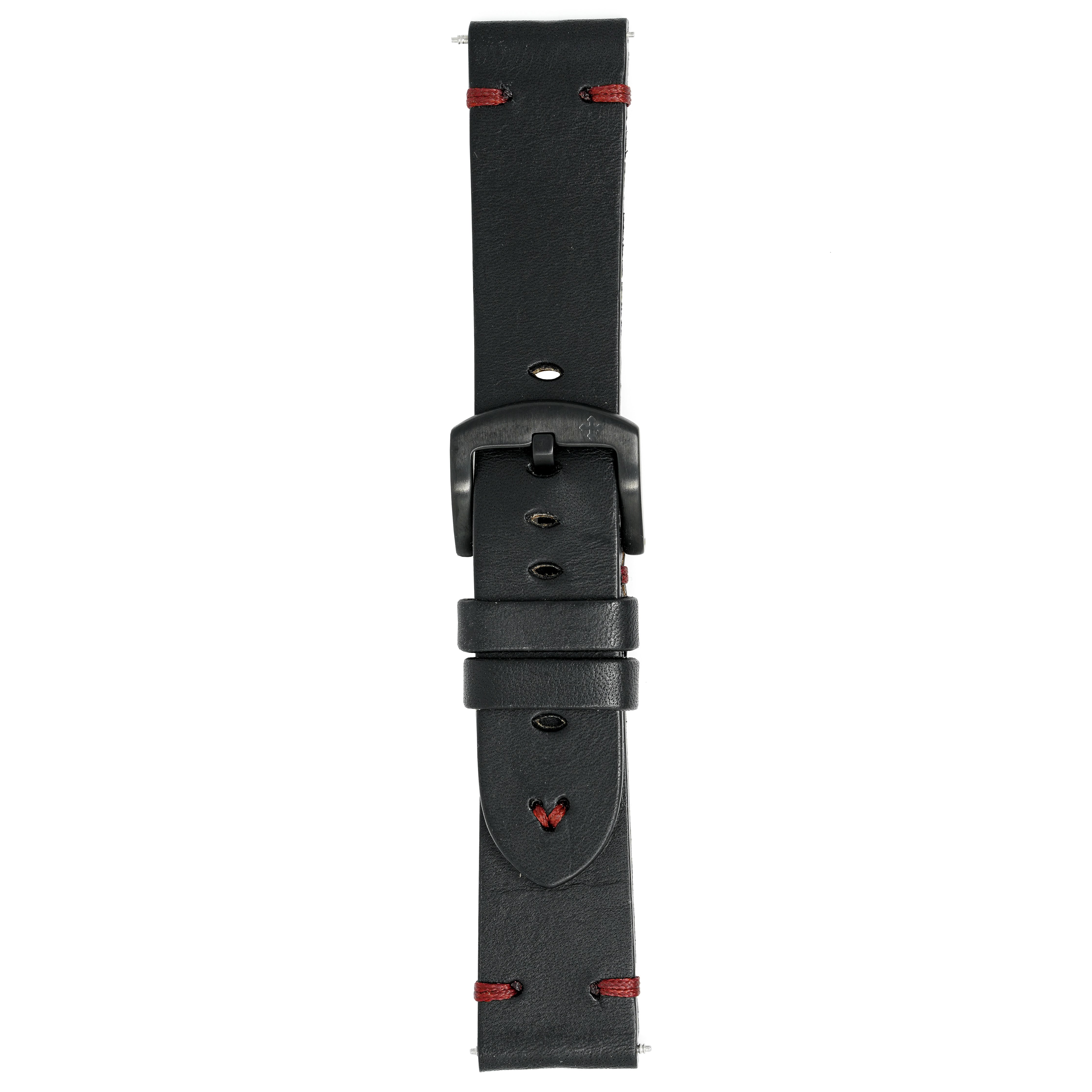 22/20mm width x 21.5cm Length Black Handmade in Italy Leather Strap with Red Stitchings - Fitted With a Brushed Black PVD Stainless Steel Buckle.