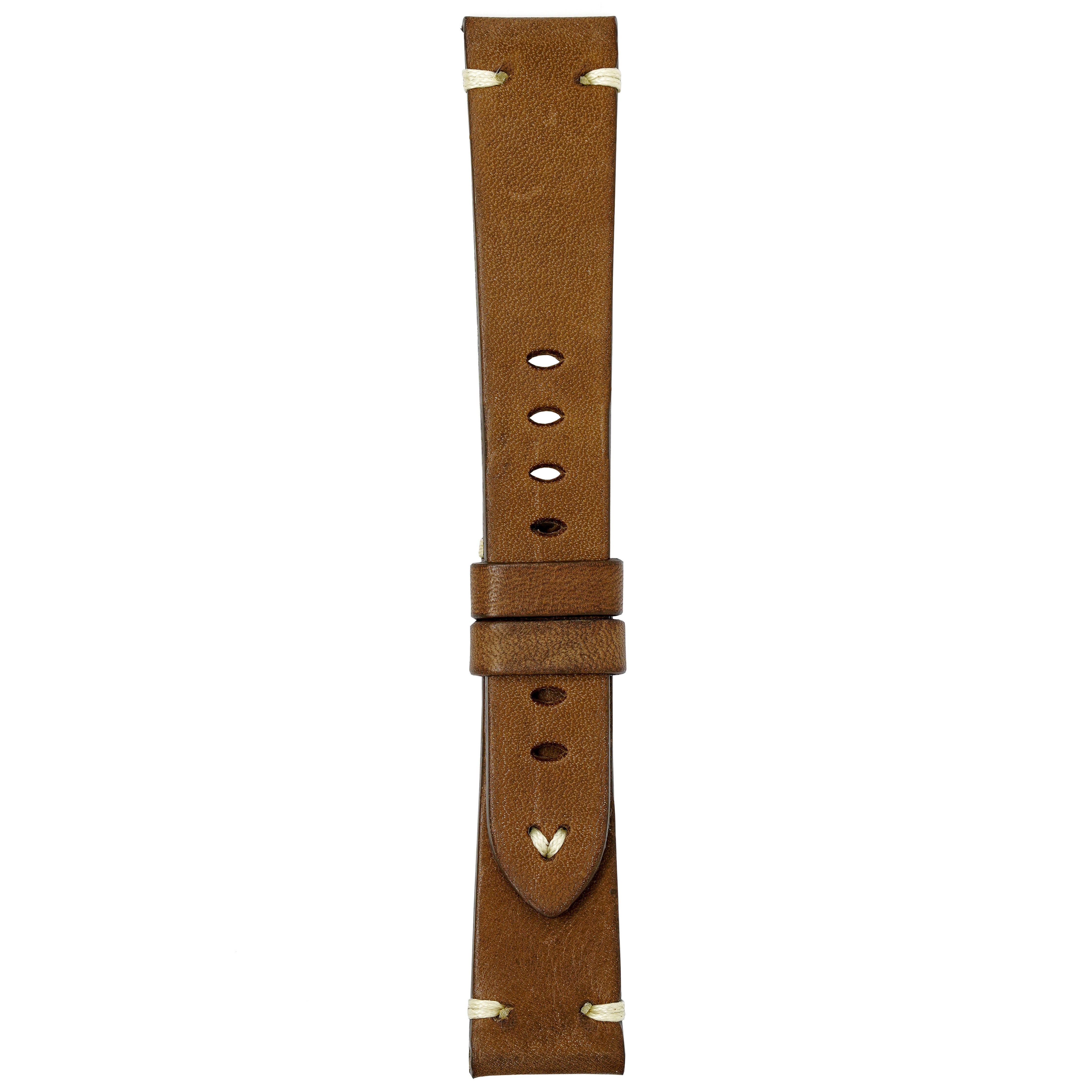 20/15.5mm width x 20cm Length Tan Handmade in Italy Leather Strap with White Stitchings - Fitted With a Polished Stainless Steel Buckle.