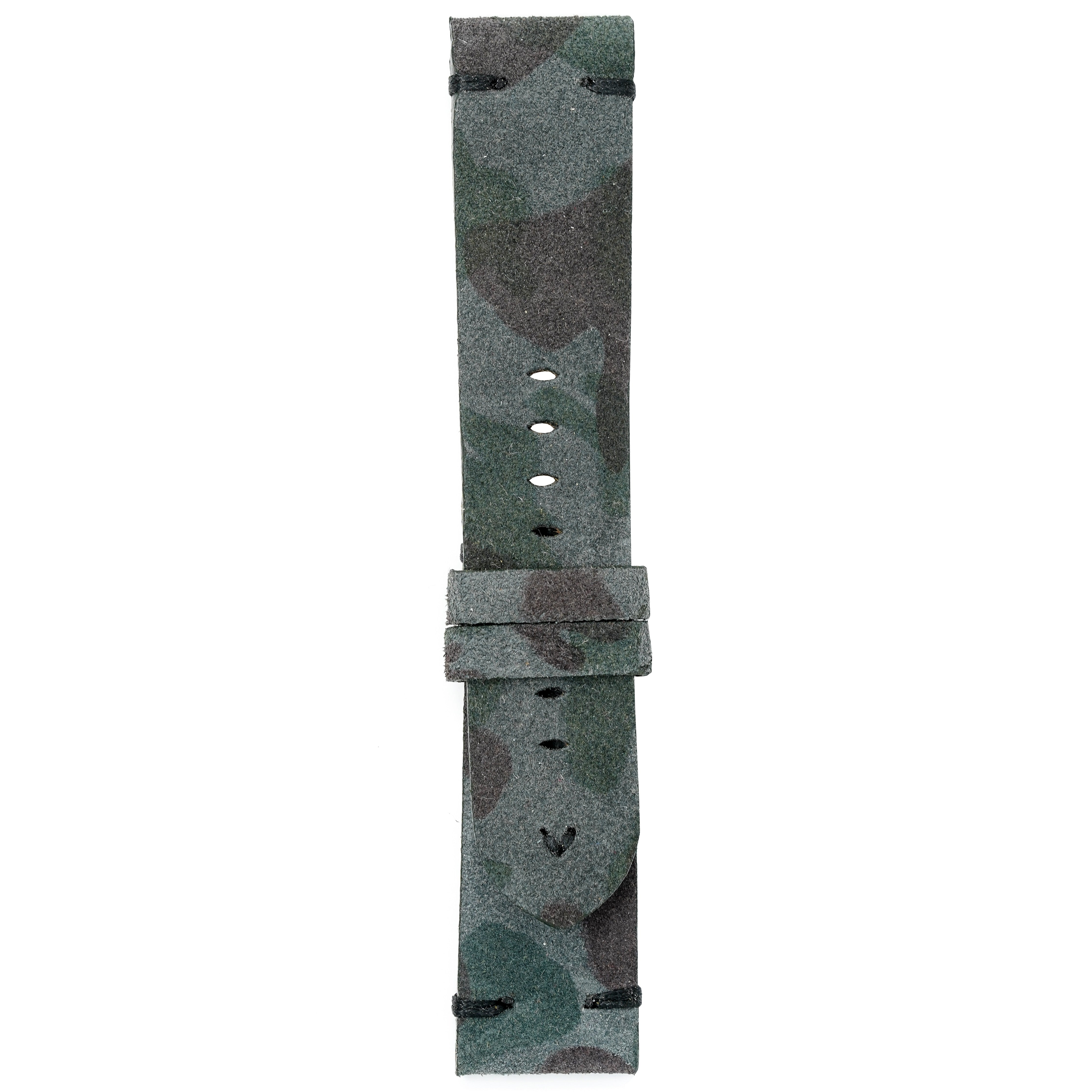 24/22mm width x 21.5cm Length Green Camo Handmade in Italy Leather Strap with Navy Stitchings - Fitted With a Brushed Stainless Steel Buckle.