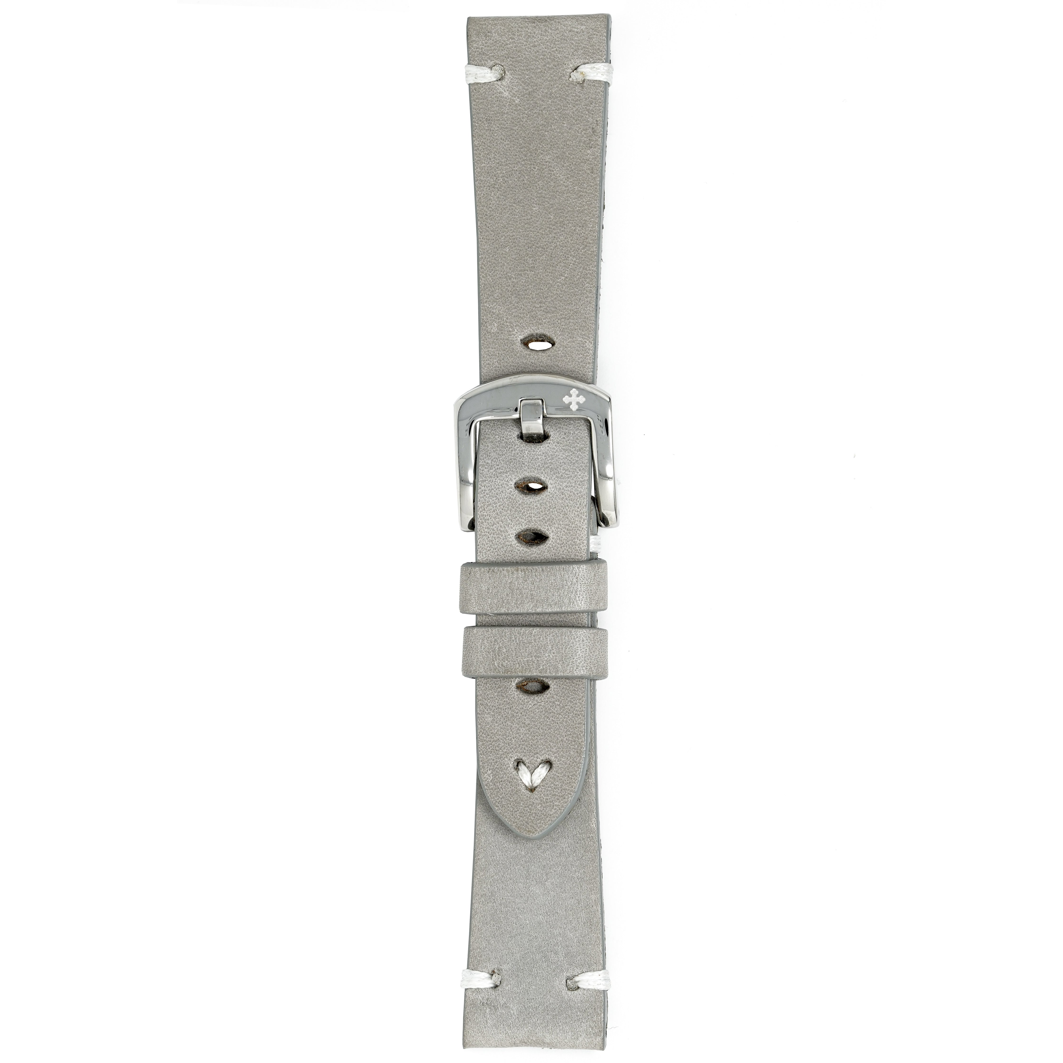 20/15.5mm width x 20cm Length Grey Handmade in Italy Leather Strap with White Stitchings - Fitted With a Polished Stainless Steel Buckle.