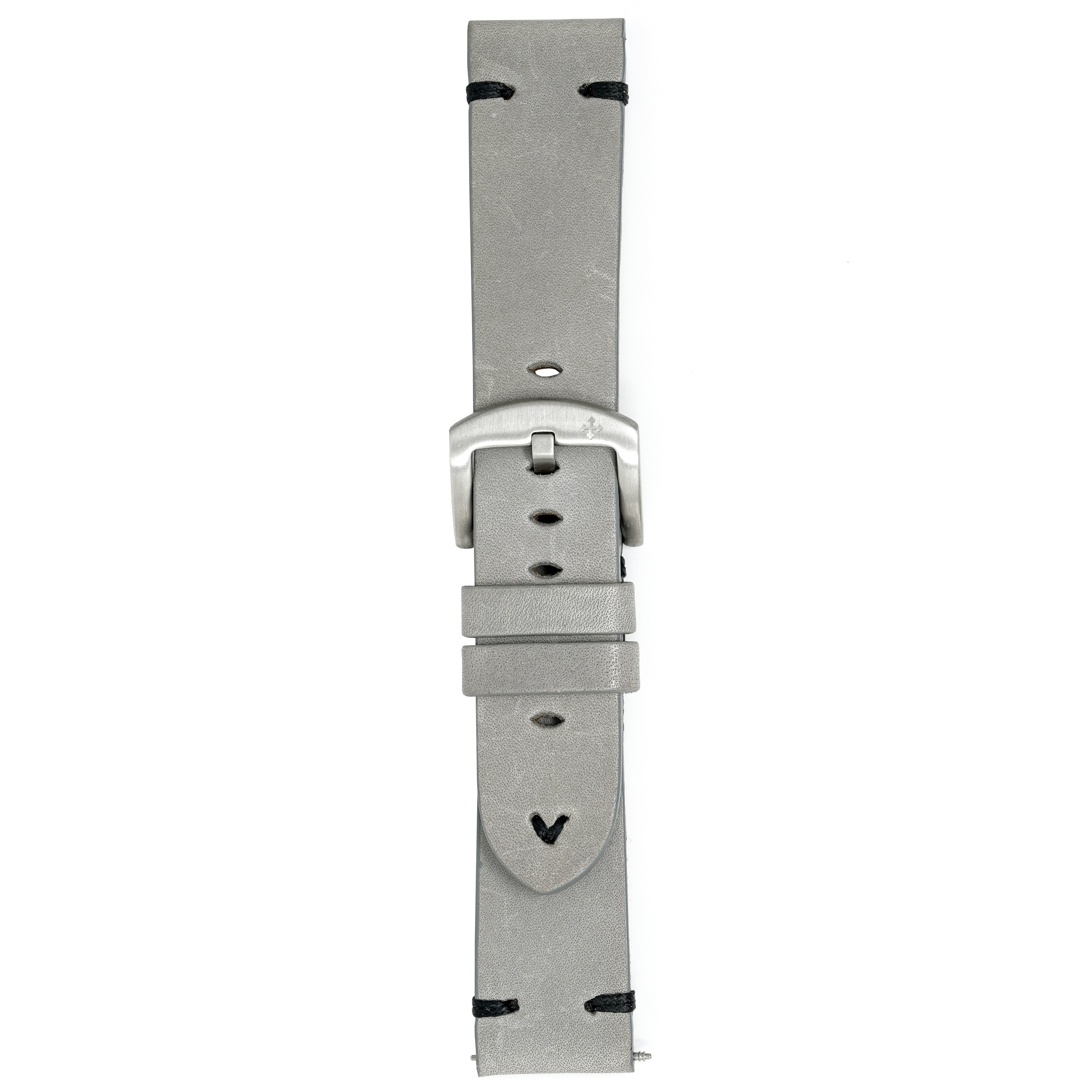 22/20mm width x 21.5cm Length Grey Handmade in Italy Leather Strap with Black Stitchings - Fitted With a Brushed Stainless Steel Buckle.