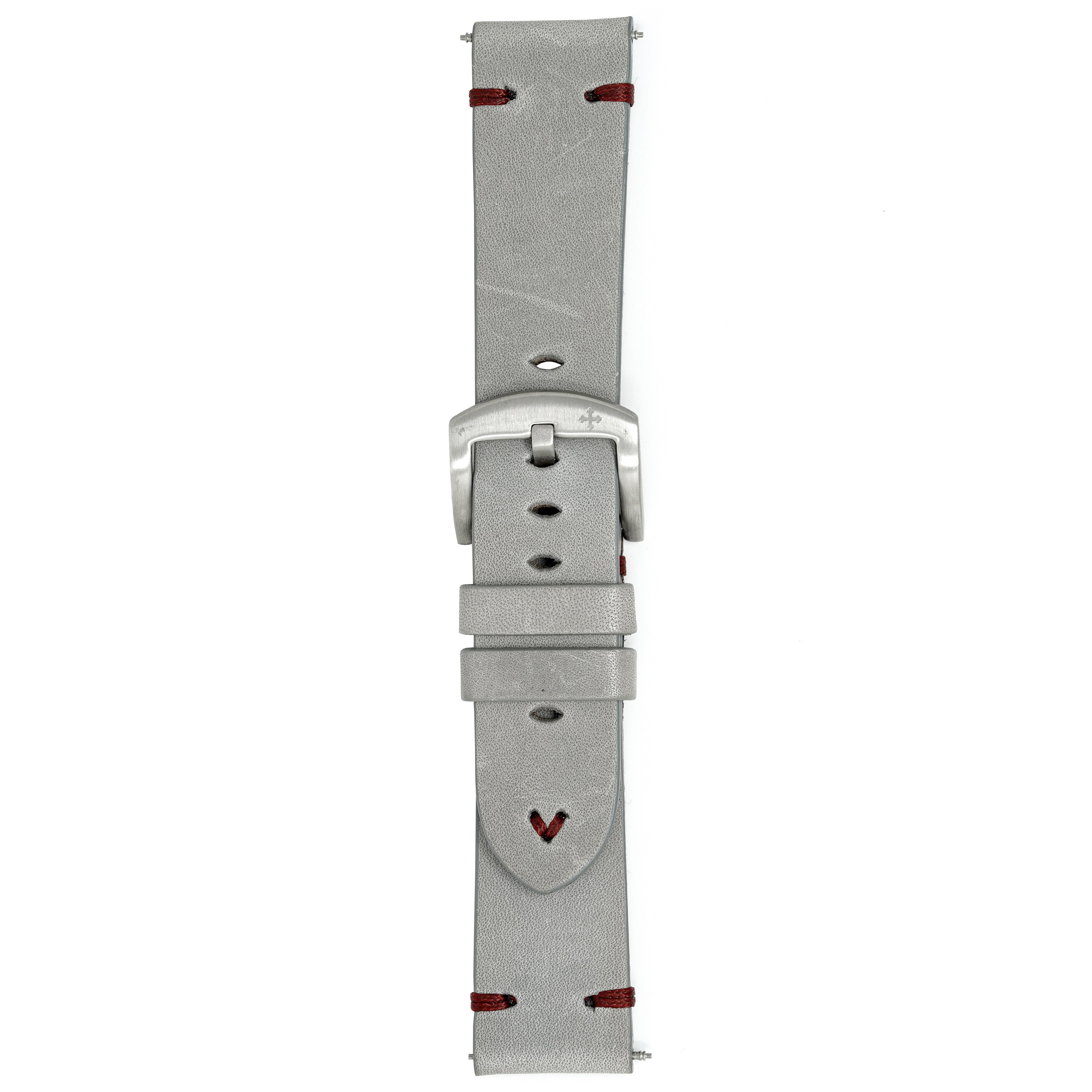 22/20mm width x 21.5cm Length Grey Handmade in Italy Leather Strap with Red Stitchings - Fitted With a Brushed Stainless Steel Buckle.