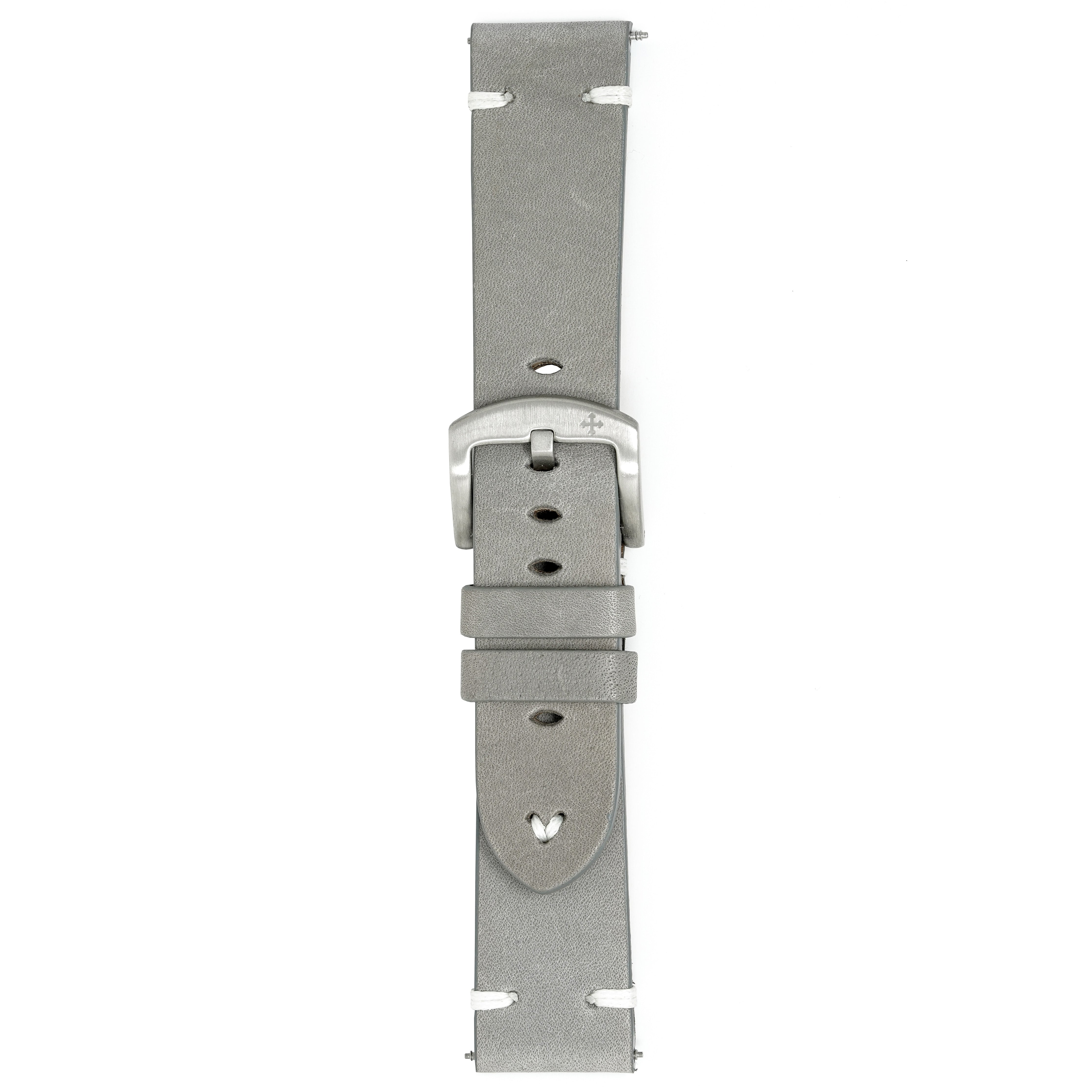 22/20mm width x 21.5cm Length Grey Handmade in Italy Leather Strap with White Stitchings - Fitted With a Brushed Stainless Steel Buckle.