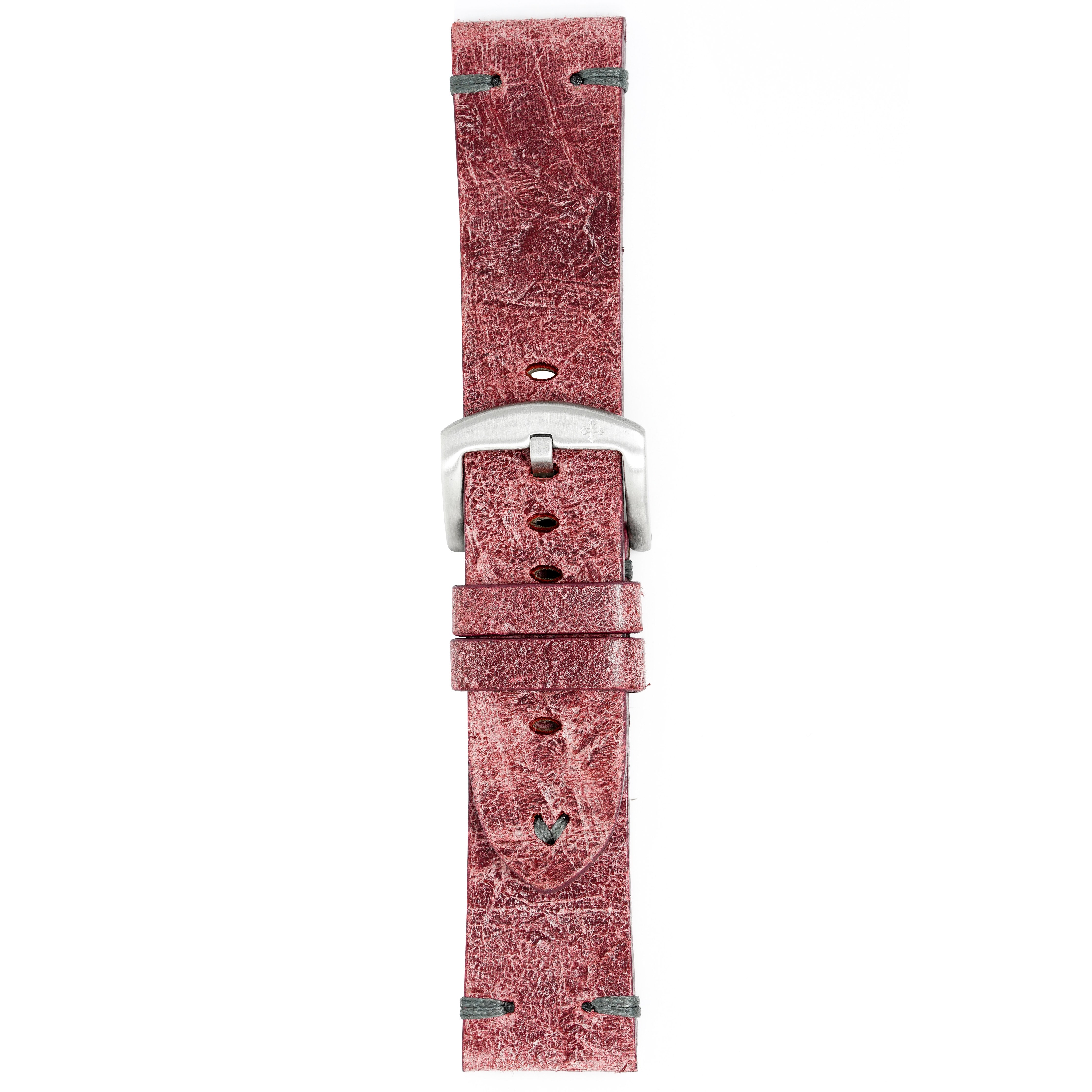 24/21.5mm width x 21.5cm Length Red Handmade in Italy Leather Strap with Grey Stitchings - Fitted With a Brushed Stainless Steel Buckle.