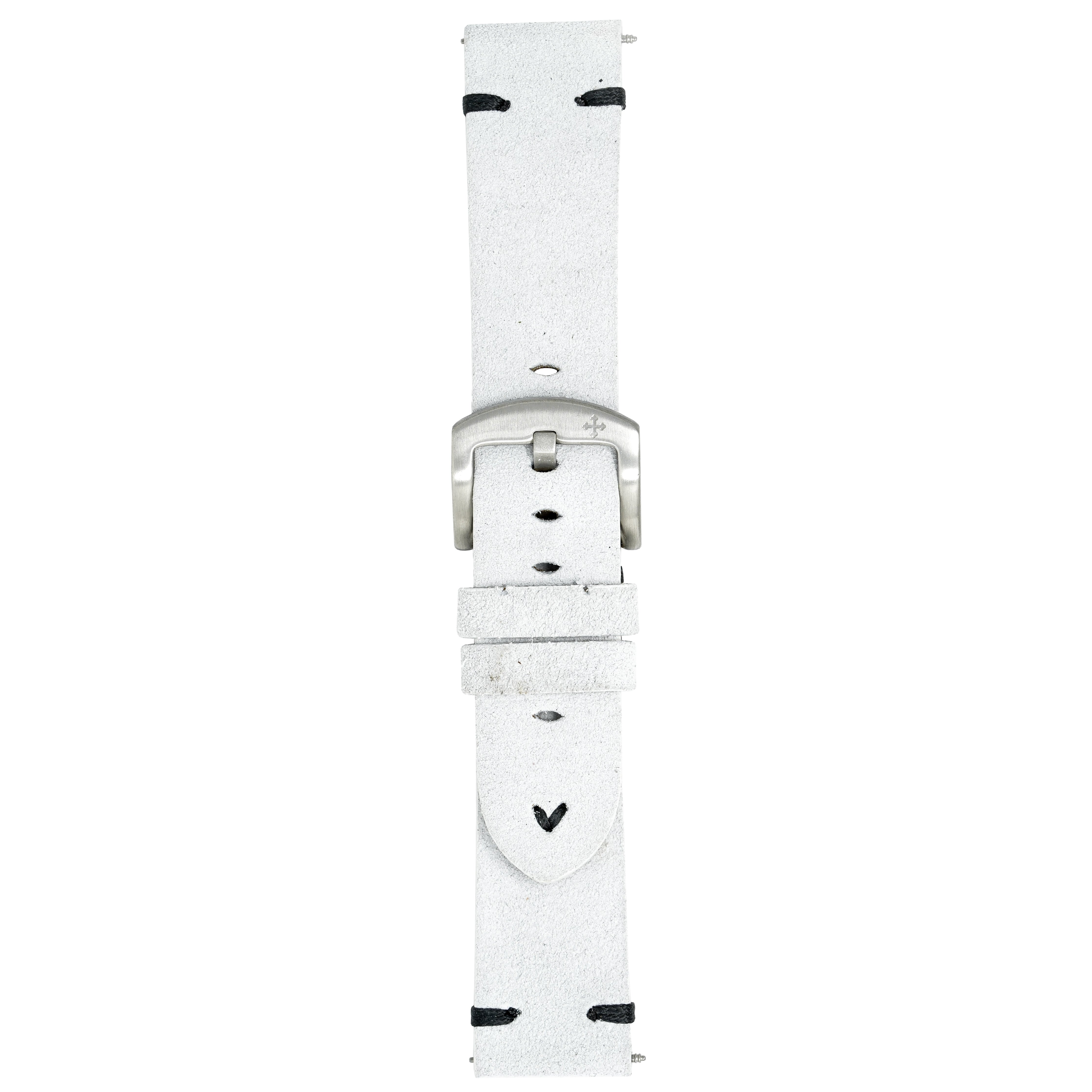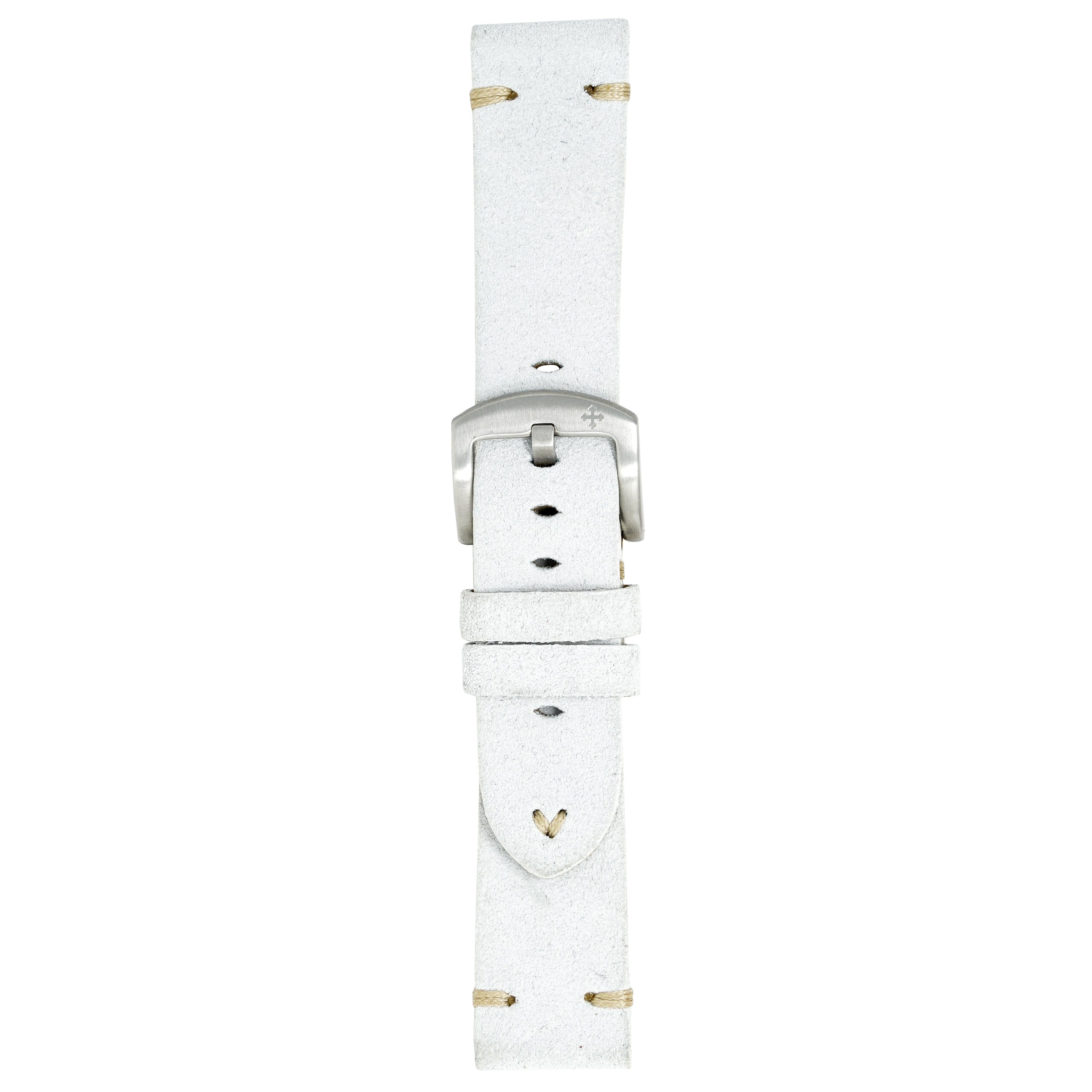 22/20mm width x 21.5cm Length White Handmade in Italy Leather Strap with Black Stitchings - Fitted With a Brushed Stainless Steel Buckle.