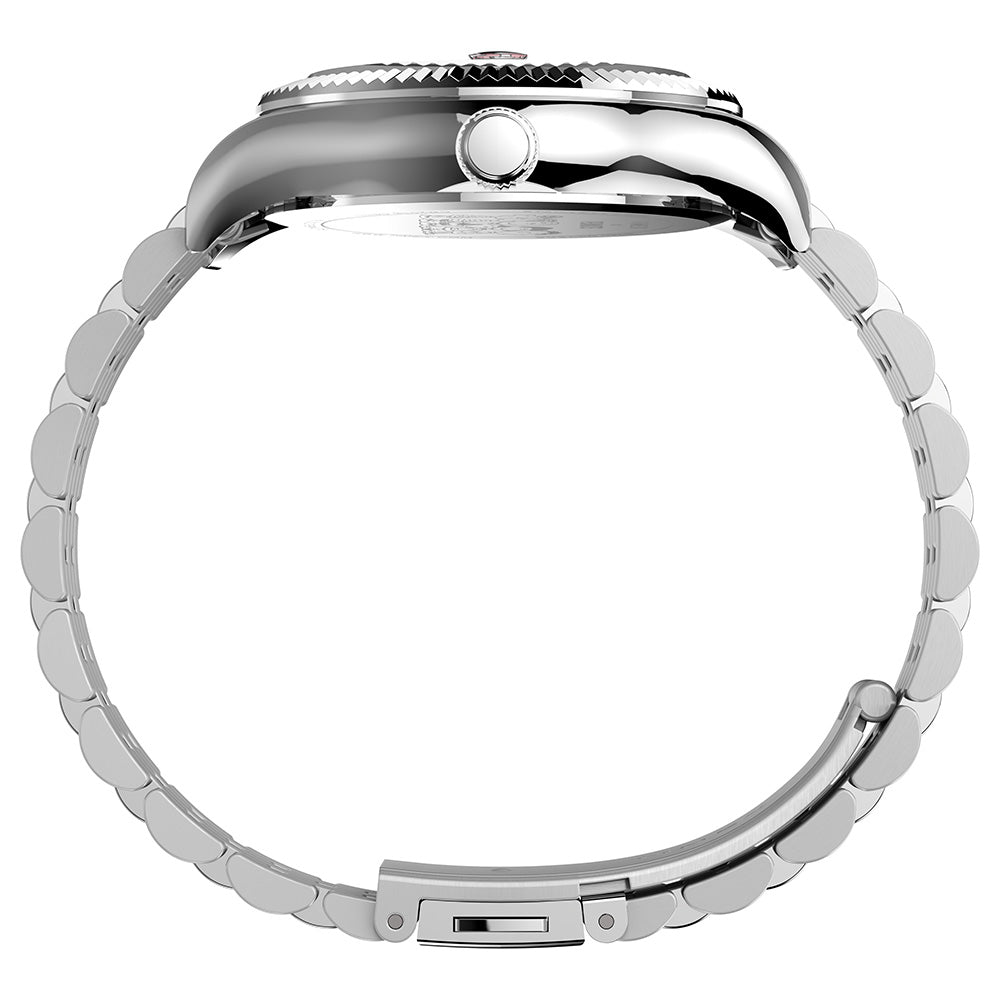 A Sunday Funnies Favorite. Snoopy’s unstoppable imagination has led him to the cheerful dial of our Legacy. This playful 34mm watch is a collectors’ item just as much as it is an accessory you can wear everyday, featuring a silver-tone stainless-steel case and bracelet. A classic construction celebrates our roots with ageless style, complemented by an elegant, fluted bezel, date display, and whimsical dial artwork.