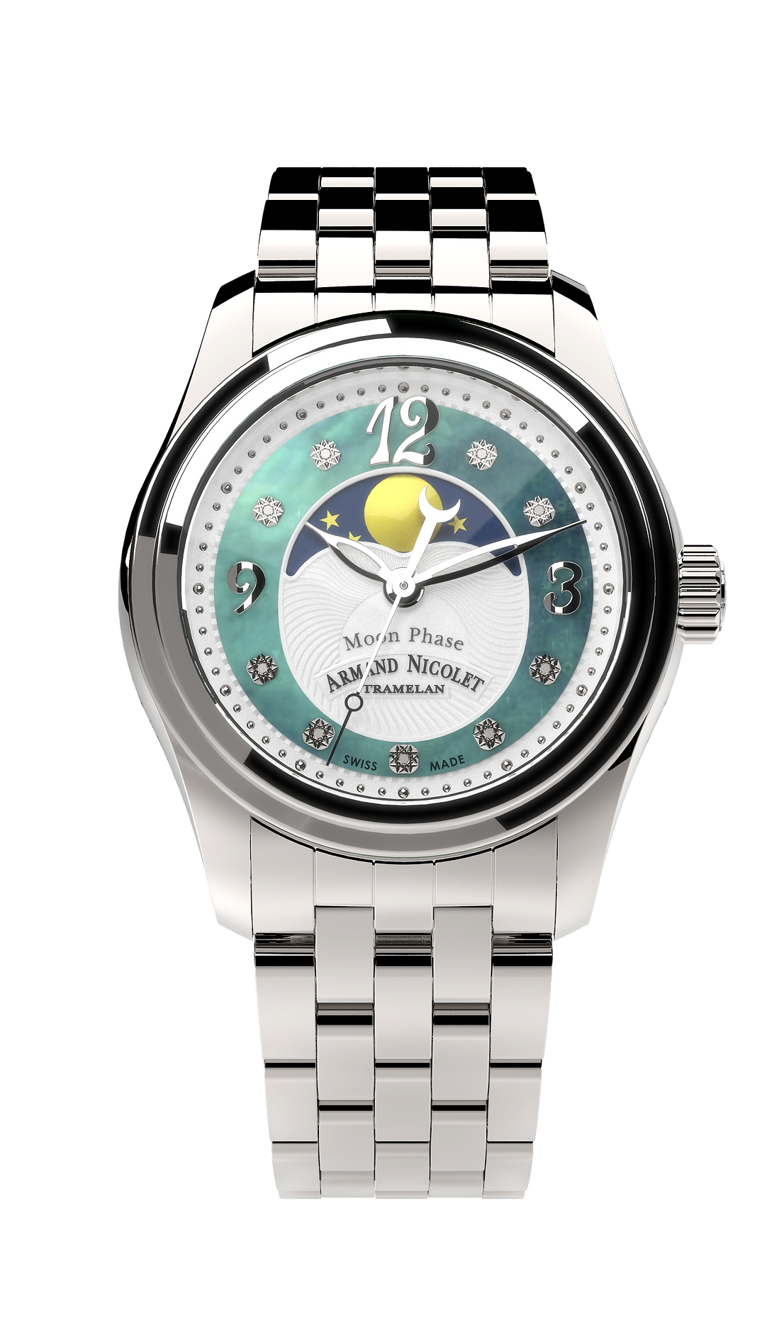 Armand Nicolet Ladies Watch M03 Moonphase 34mm Silver Green A151QAA-AV-MA150 - Specification