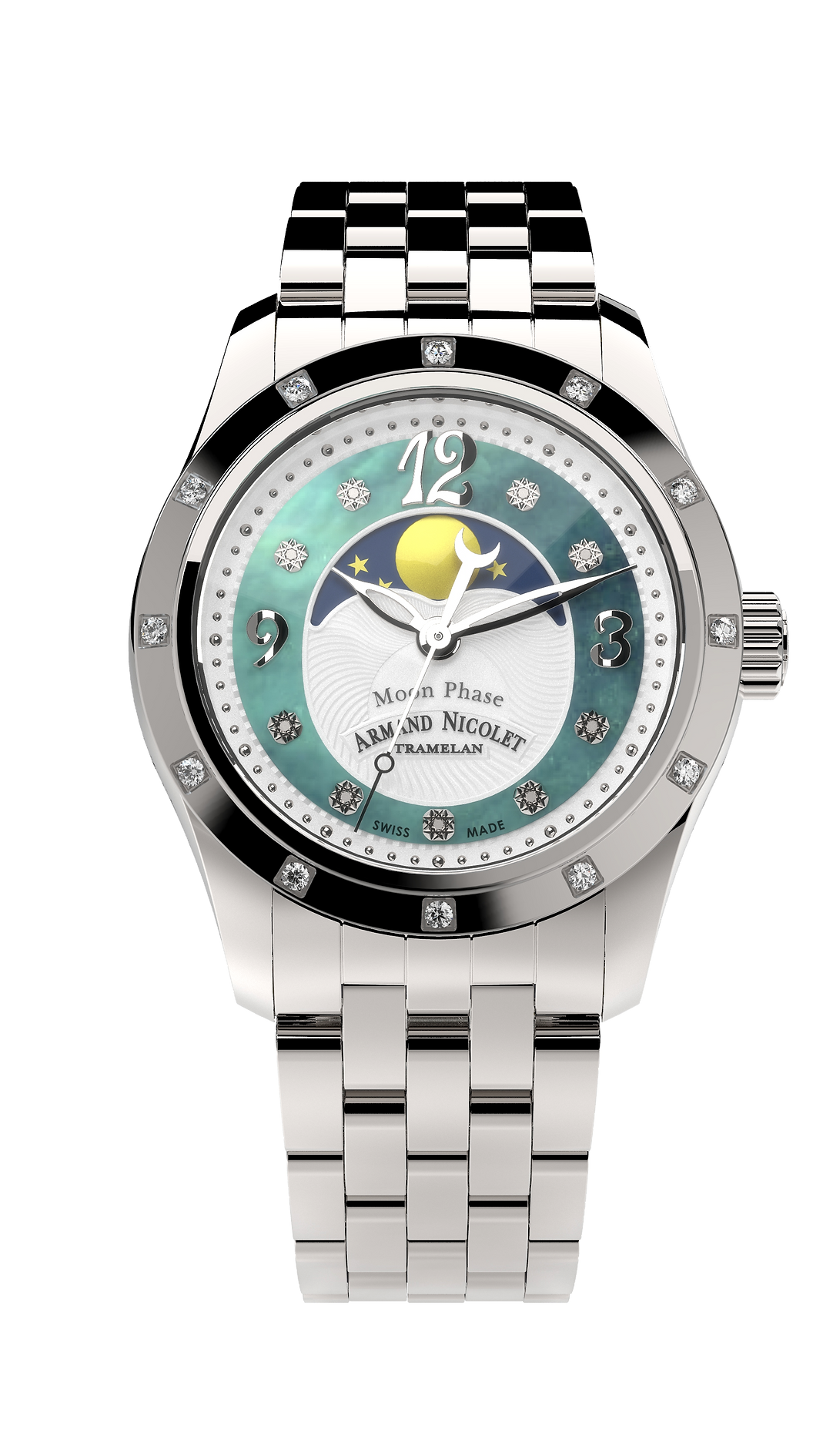 Armand Nicolet Ladies Watch M03 Moonphase 34mm Silver Green A151RAA-AV-MA150 - Specification