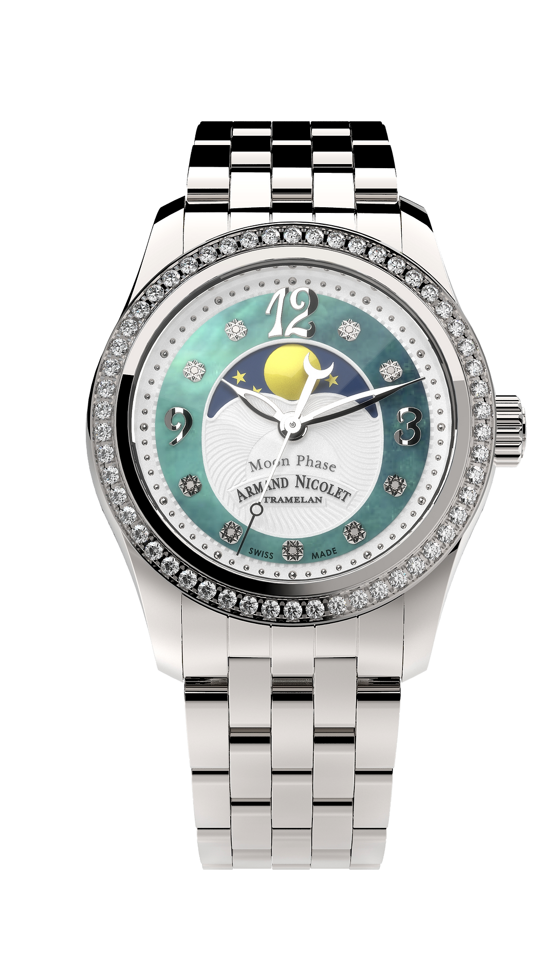 Armand Nicolet Ladies Watch M03 Moonphase 34mm Silver Green A151TAA-AV-MA150 - Specification