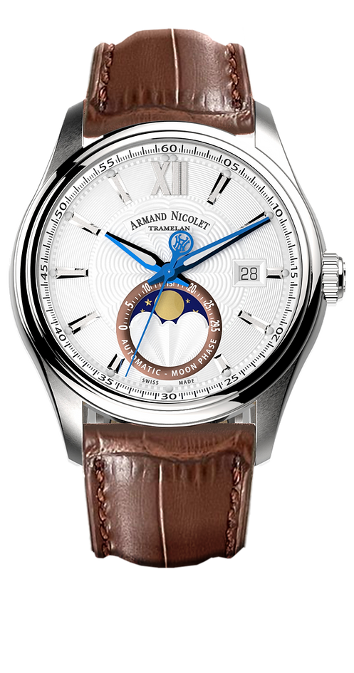 Armand Nicolet Men's Watch M02 Moonphase 41mm Silver A740L-AG-BP22740MAM - Specification