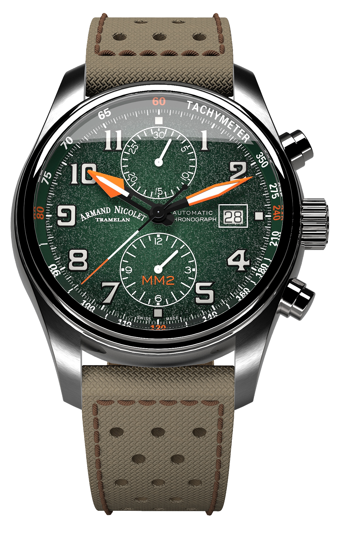 Armand Nicolet Men's Watch MM2 Chronograph 43mm Green A647P-NV-P0640KM8 - Specification