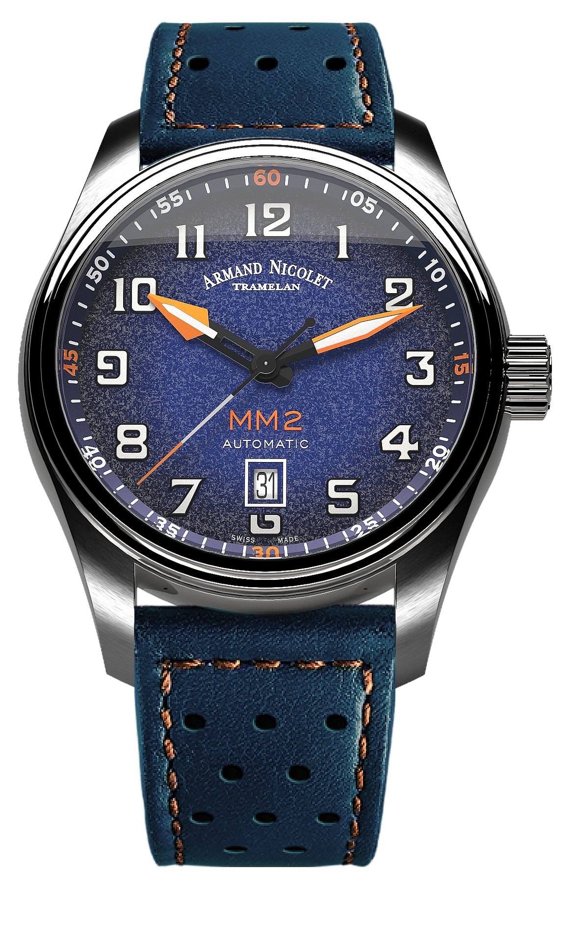 Armand Nicolet Men's Watch MM2 Date 43mm Blue A640P-BN-BP22641BAO - Specification