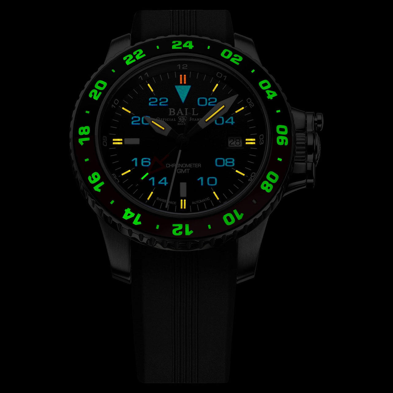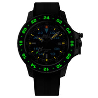 • Features: 44 micro gas tubes on hour, minute, second, second time zone hands, dial and bezel for night reading capability