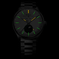 • 16 micro gas tubes on hour, minute and second hands and dial for night reading capability