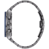 Cutting edge design with the Millennia, featuring a 6-hand chronograph movement. Styled here with a stainless steel case and bracelet and sleek blue dial with signature edge-to-edge crystal for a refined look. Additional features include date/day display.