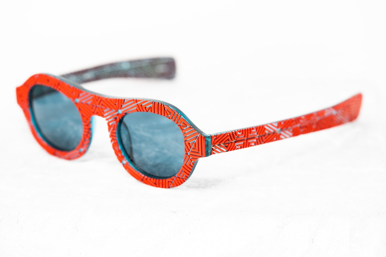 Frame/Temple Colour: Solid Red/Transparent Blue