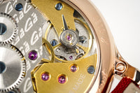 46mm x 14mm Rose Gold Plated 316L Stainless Steel Case - Domed Anti-Reflective Sapphire Crystal. Screwed Down Caseback with Porthole.