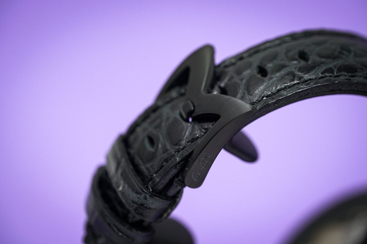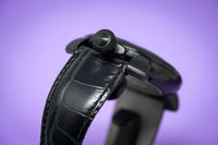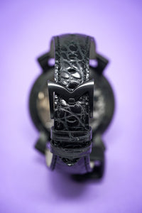 24mm x 19cm Handmade Italian Black Croco Imitation Leather Strap and a Black PVD Stainless Steel Buckle