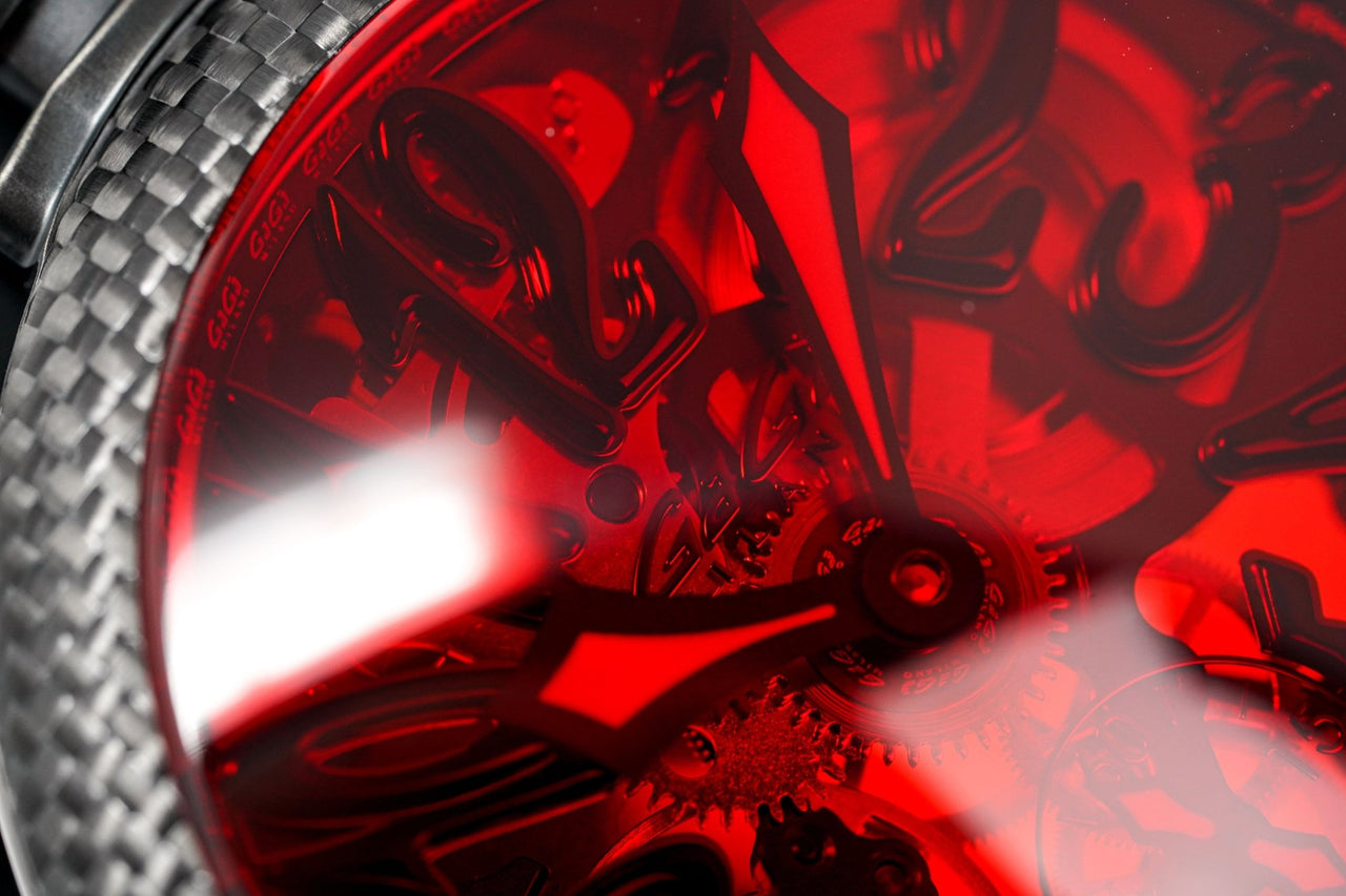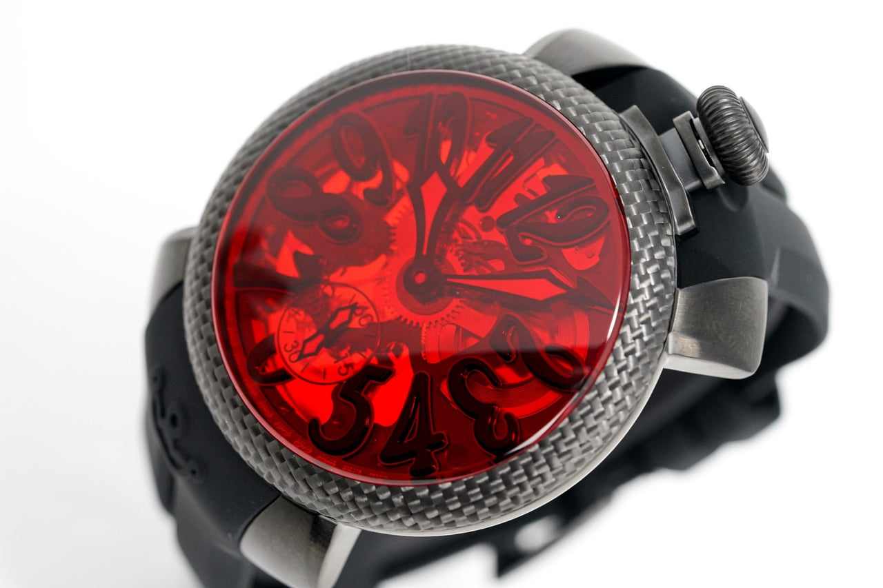 GaGà Milano Watch Skeleton 48MM Red Black Carbon - Specification
