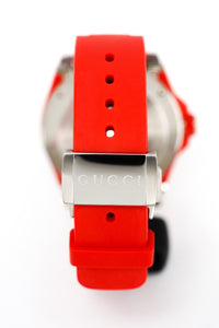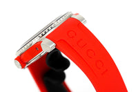 20mm Red Rubber Two-Piece Strap with Gucci Branded. Stainless Steel Push Deployment Buckle.