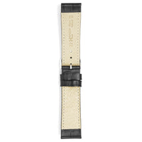 22mm width x 20cm Length Black Alligator Embossed Leather Strap with Dark Grey Stitchings - Fitted With a Polished Stainless Steel Buckle.