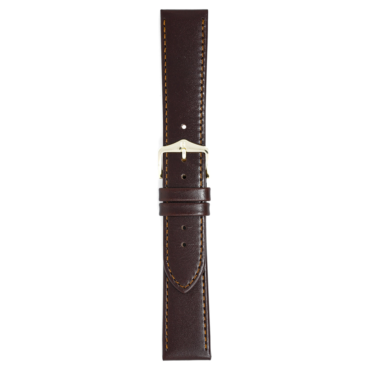20mm width x 20cm Length Dark Brown Leather Strap with Brown Stitchings - Fitted With a Polished Gold Plated Stainless Steel Buckle.