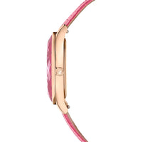 Pink Italian Calf-skin Leather strap with Rose Gold Plated Stainless Steel Pin Buckle.